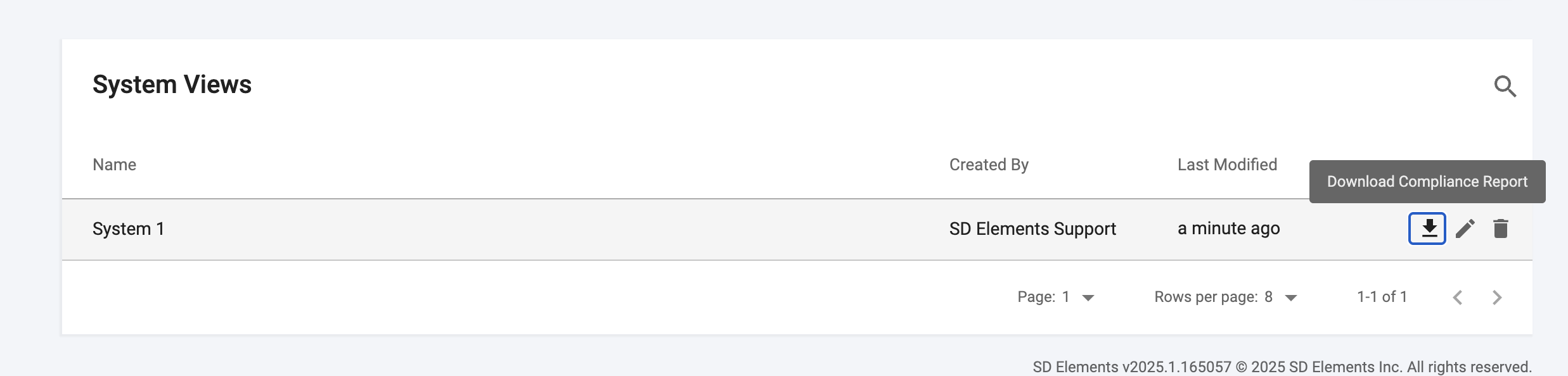 In the event you no longer require a Compliance Report under a specific System View, you have the option to delete the entry via UI or API. Deleting the specific compliance report will not delete or impact the System View