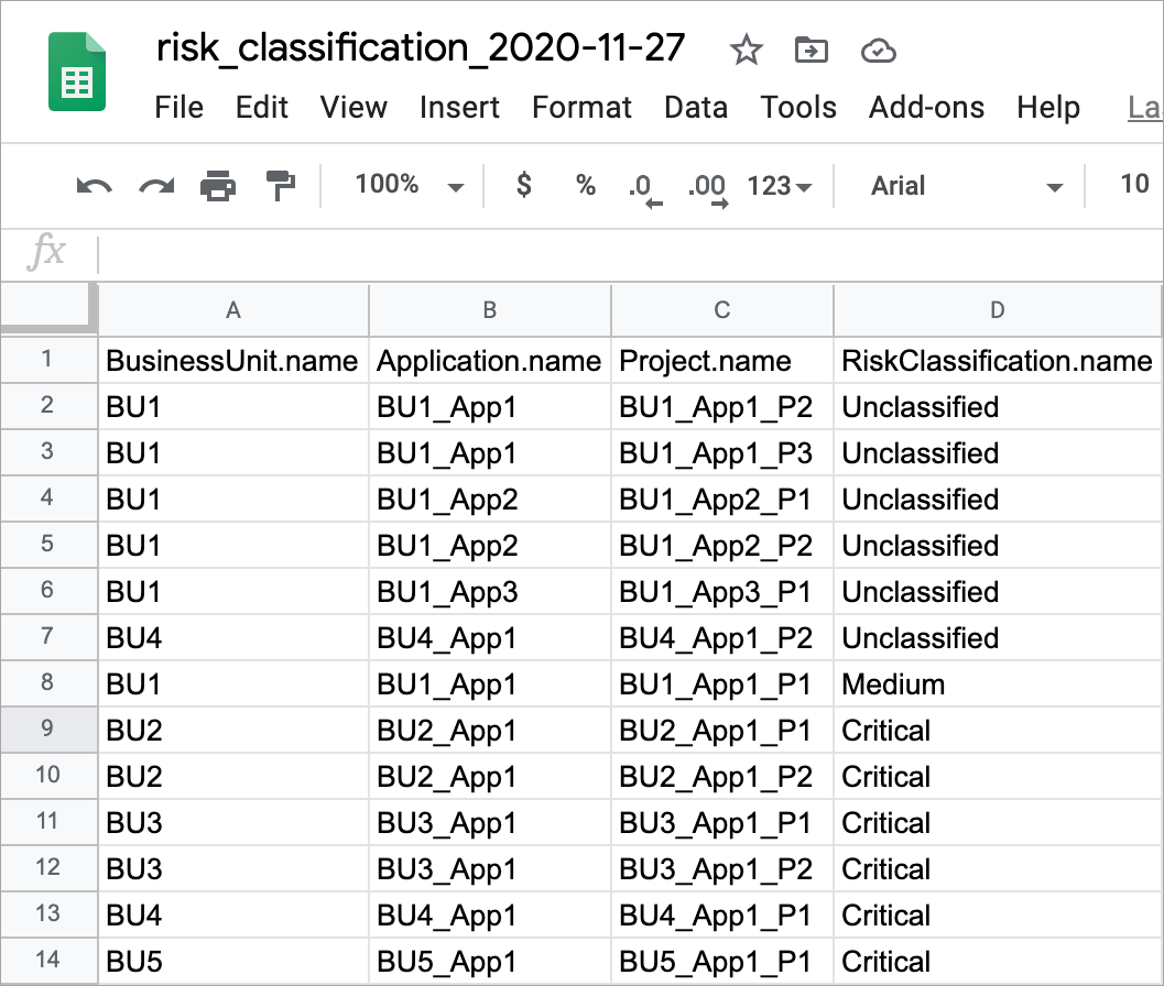 This widget provides a table of all projects in the organization against their Risk Classification. This view consolidates all projects against their classifications to help you manage the risk of sensitive Tasks throughout their development cycle.