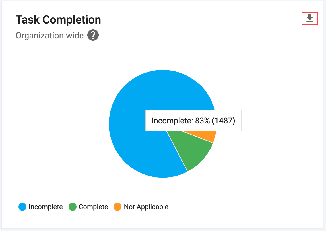 You can hover over each section of the pie chart to see the distribution of Tasks as a percentage and number based on an Incomplete, Complete, or Not Applicable status.