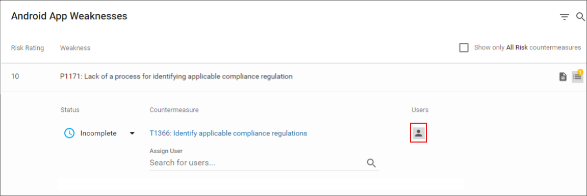From Related Countermeasures, you can also assign users to the Countermeasure by clicking on the person icon.
