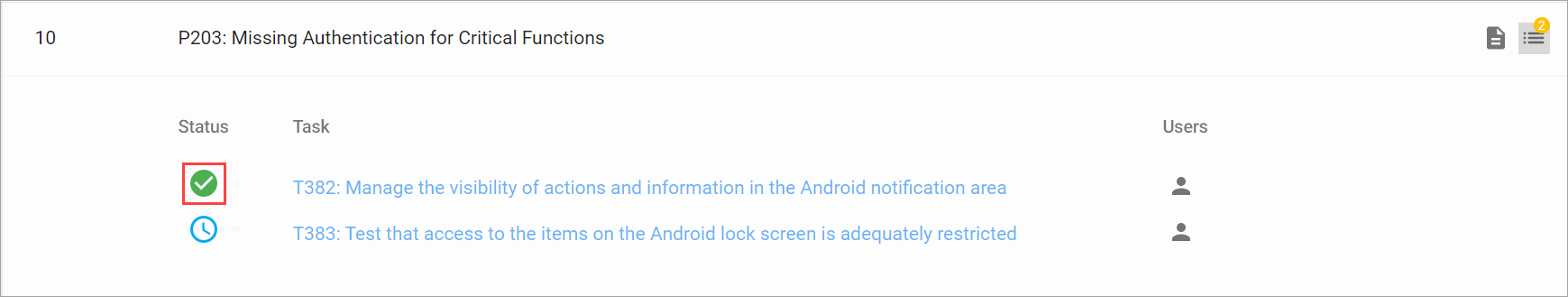 2. From Related Tasks, you can modify the status of a Task by clicking on the Task status icon.