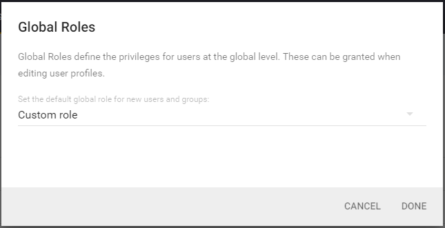 You can select a global role to assign to new users. By default this value is the restricted User role. You may want to give users more permissive roles, such as Project Lead, or a custom role.